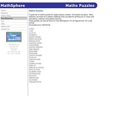 Mathsphere maths puzzles about two dozen printable puzzles (pdf) for upper elementary children.